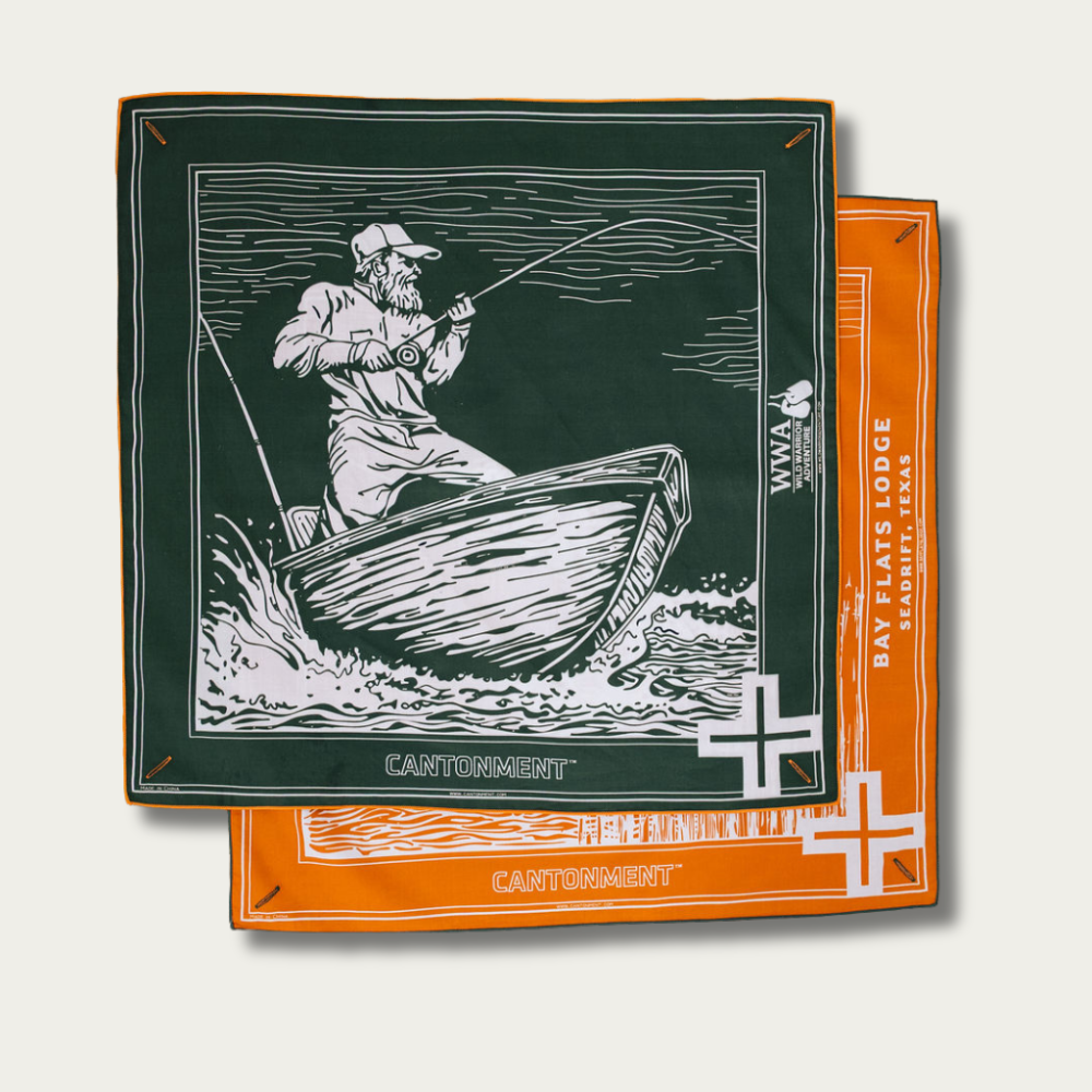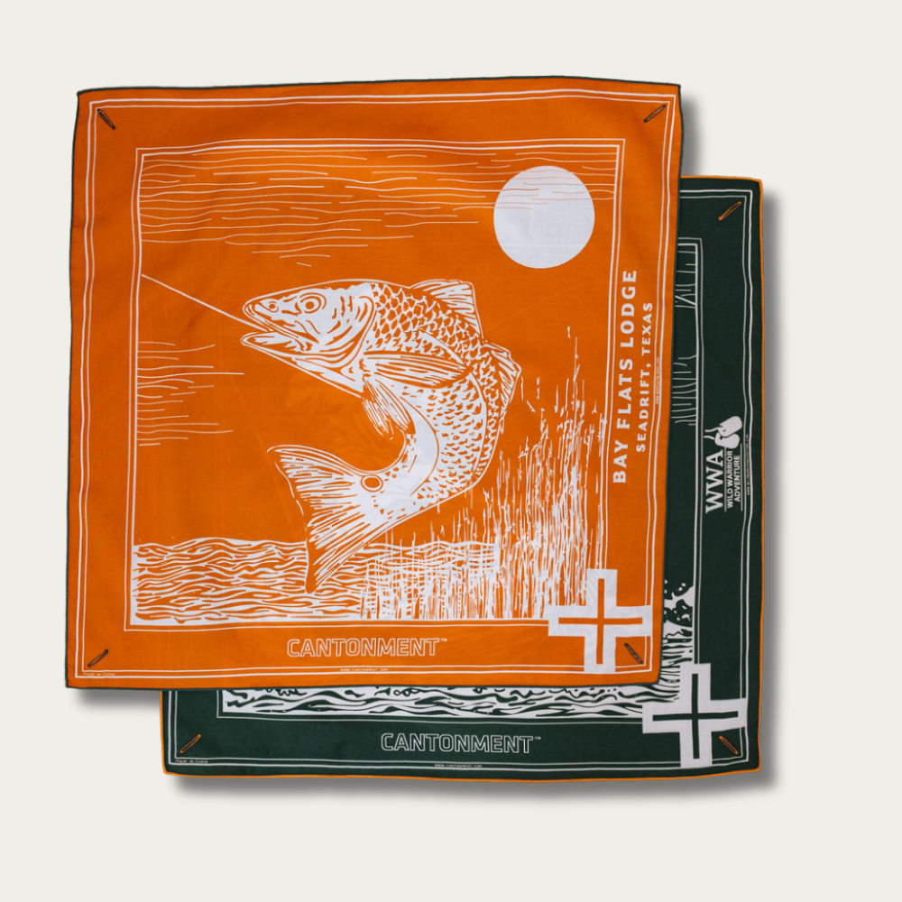 This limited-edition kerchief set celebrates the partnership between Bay Flats Lodge and Wild Warrior Adventure (WWA)—a faith-based nonprofit helping U.S. veterans heal through time outdoors.